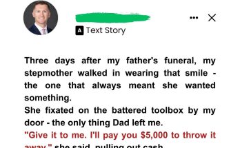 When my father passed away, he left me one thing: a rusty, locked toolbox. Days later, my stepmother April showed up with a smile that always meant trouble — and offered me $5,000 …