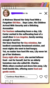 Lily helped him because, deep in his weary eyes, she saw her grandfather—the one she had lost five years earlier, alone and poor in a small rural town.