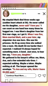 My stepfather never called me his daughter. I spent years being the “invisible and unwanted” child in my own family. When he died, he bequeathed his $640K estate to me while leaving my mom and stepsister just $5K each. The reason and their reaction shocked me more than the inheritance did.