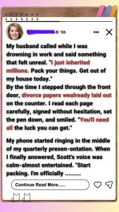 My husband called while I was drowning in work and said something that felt unreal. “I just inherited millions. Pack your things. Get out of my house today.” By the time I stepped through the front door, divorce papers were already laid out on the counter. I read each page carefully, signed without hesitation, set the pen down, and smiled. “You’ll need all the luck you can get.”