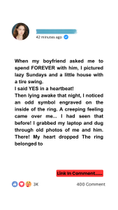 He was standing next to a woman whose face was turned away from the camera. She was wearing a familiar sundress, but it wasn’t the dress that stopped my heart. Resting on the table in front of her was a velvet box. Inside that box was the same gold ring.